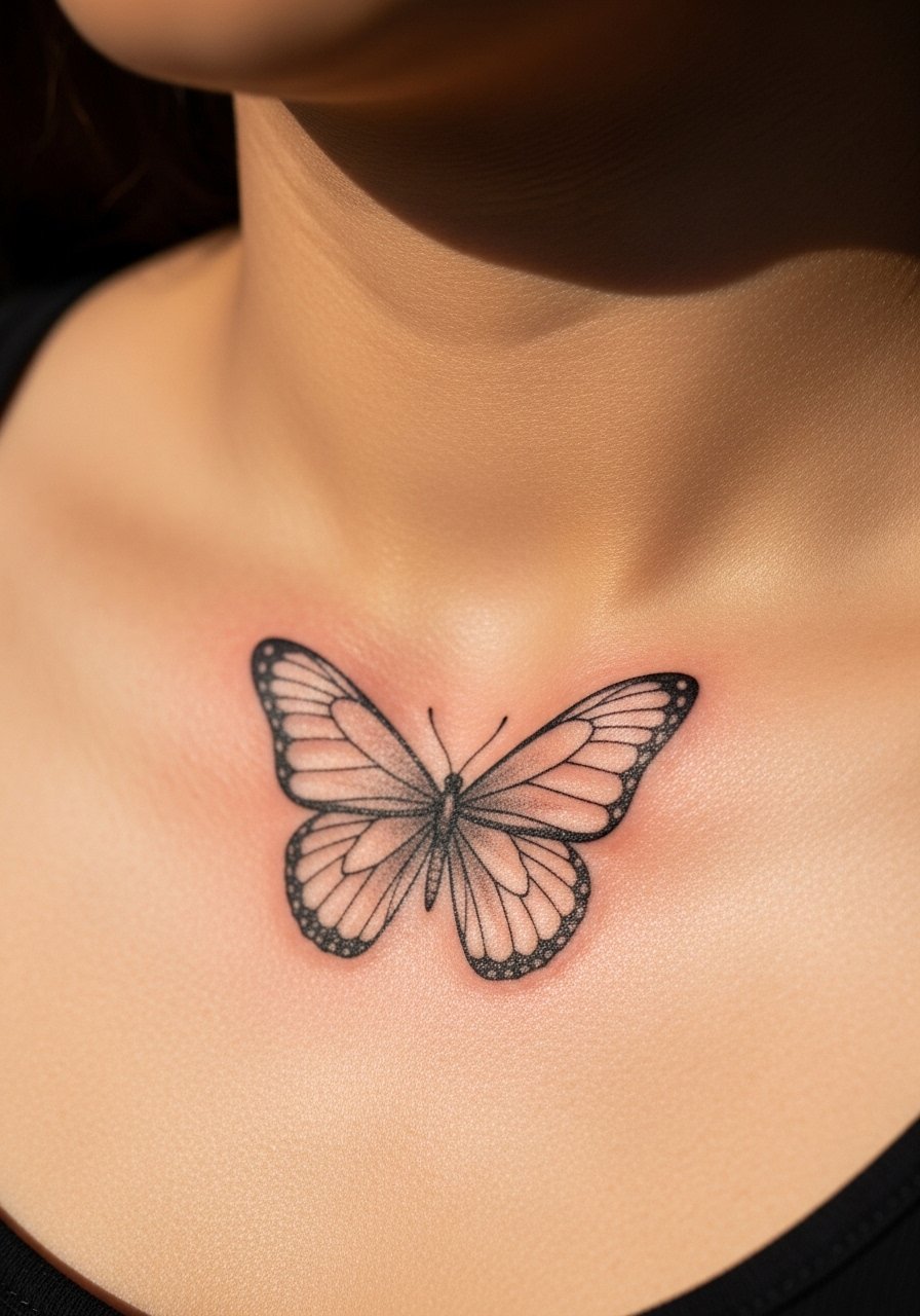 4. Fine Line Butterfly on Collarbone