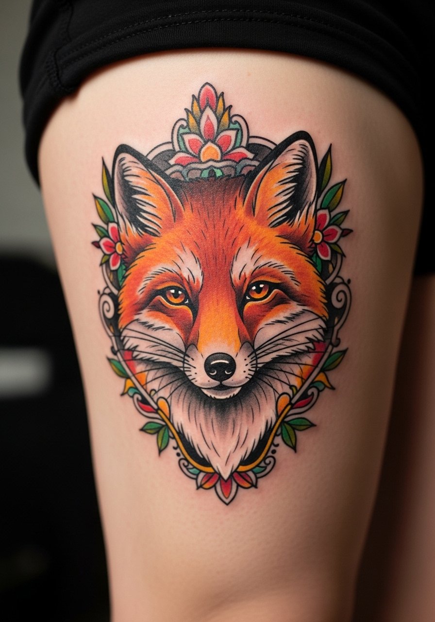 5. Neo-Traditional Fox on Thigh