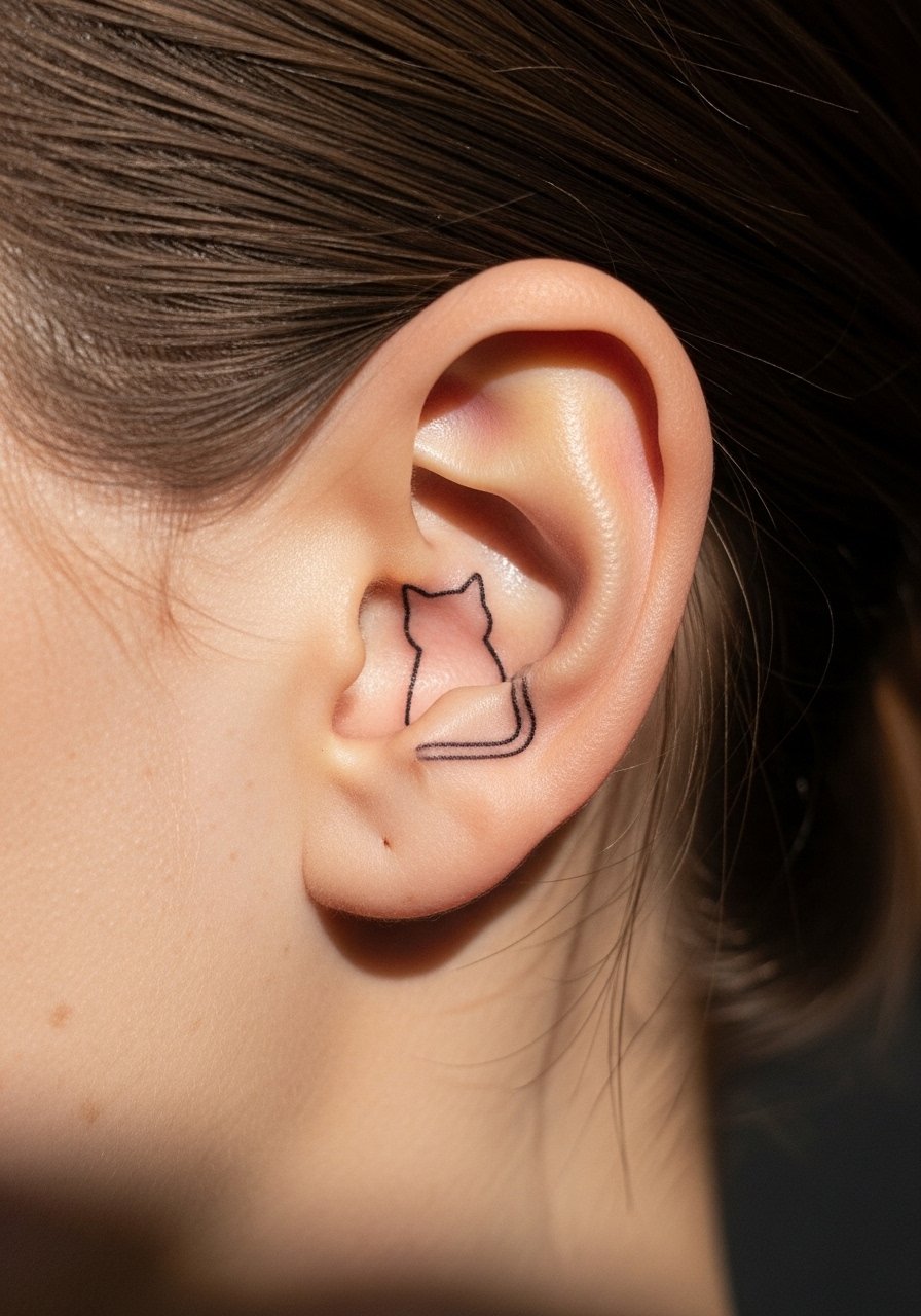 10. Minimalist Cat Outline Behind Ear