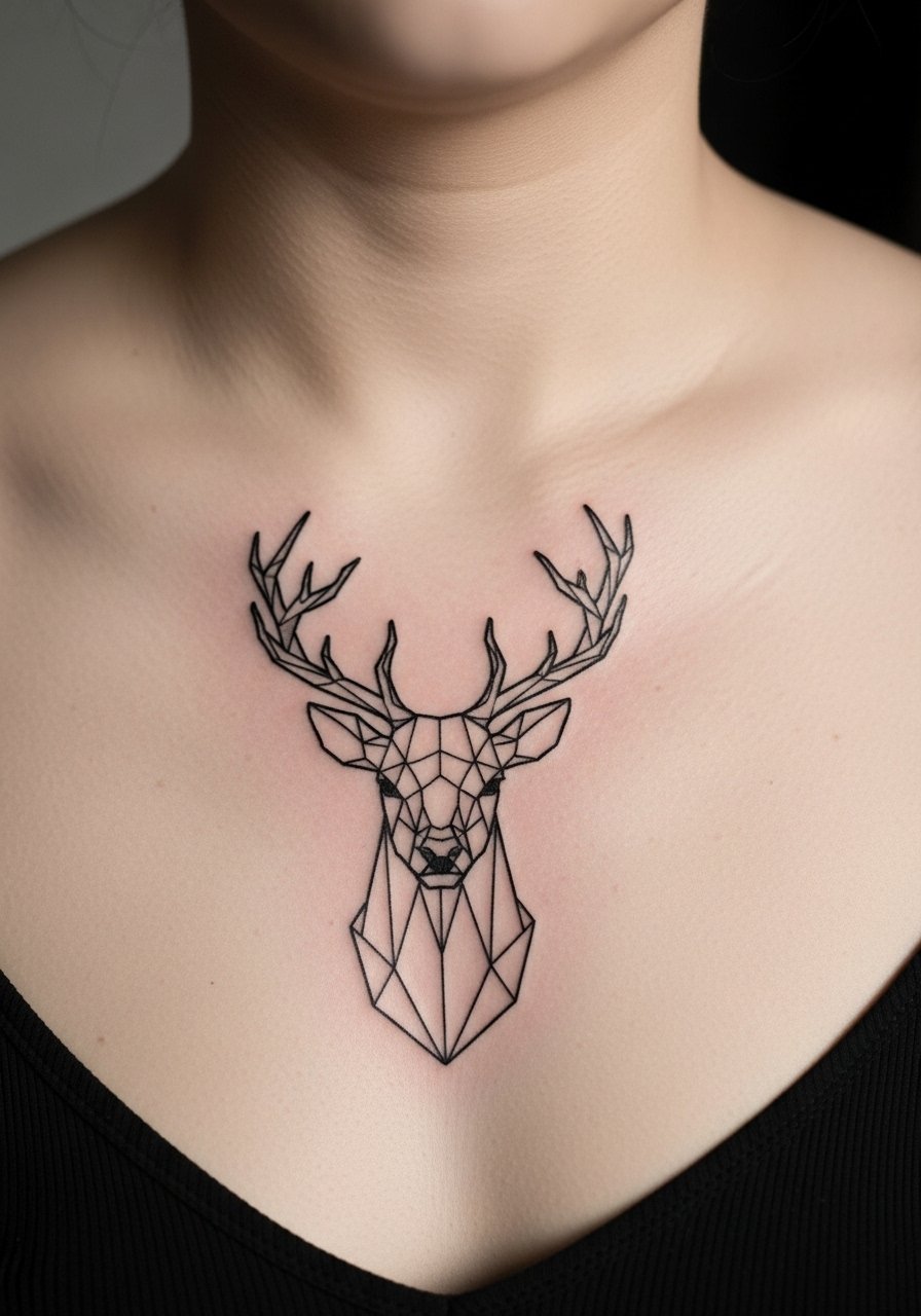 A stag blends nobility and calmness; geometric antlers add a modern edge. Chest placement gives symmetry and presence. Pain is moderate and manageable with breaks. For geometric stags, clarity is everything — crisp lines and balanced negative space preserve the motif as skin shifts over time. I requested slightly thicker primary lines to maintain readability after healing. Don’t overload with tiny dotwork inside antlers unless the artist regularly shows healed dotwork examples — dots can merge over time.