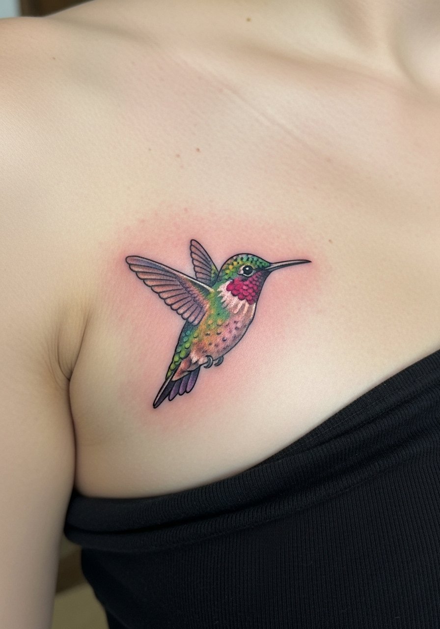Rib tattoos hurt more than most, but a tiny hummingbird there feels intimate and secretive. Fine line with gentle color highlights can look magical healed, but ribs require patience during both session and healing. Expect tenderness for several days. Artists often advise smaller rib tattoos to avoid long sessions that exacerbate pain. A common mistake is picking the ribs for very detailed tiny pieces; skin movement and breathing can make precise detail harder to execute. I scheduled a short session, healing was slower but worth the placement.