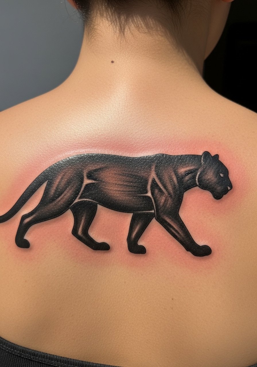 A panther on the shoulder blade reads sleek and controlled. Shoulder blade skin is roomy and relatively low pain, making it a good spot for a strong black silhouette. Blackwork holds up well there since it's not high-movement or high-friction. The main design risk is losing shape with posture changes; good artists plan shapes to follow muscle lines. I liked that my panther still reads from the side when my arm is down. Ask to see healed shoulder blade silhouettes from your artist so you know how solid fills behave on that canvas.