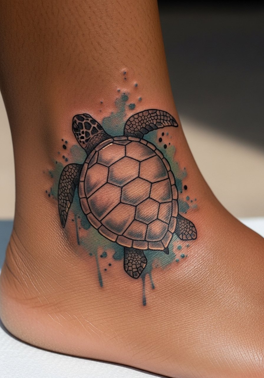 16. Sea Turtle Near Ankle in Watercolor-Adjacent Style