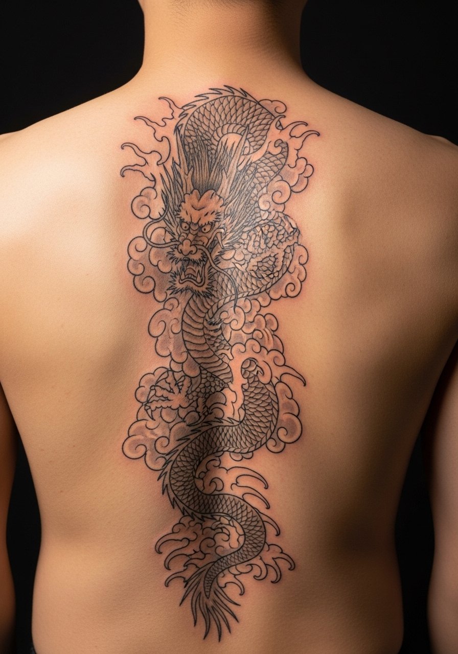 An eastern dragon along the spine reads powerful and protective. Spine tattoos are high pain because of proximity to bone, but they offer unmatched vertical drama. Flow and spacing matter more than tiny detail — a dragon needs readable curves as your posture changes. Expect several sessions and careful aftercare to avoid scabbing that obscures scales. I spaced my sessions to allow healing between major fills and had the artist plan cloud negative-space to keep the dragon popping as the skin settled.