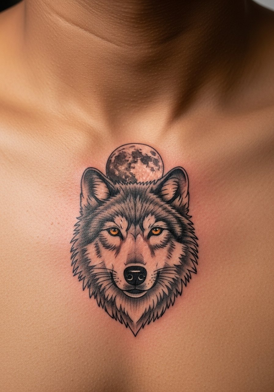 Combining a wolf and moon feels poetic — pack instincts and cycles of self. Sternum-centered pieces are dramatic but painful; plan sessions accordingly. Black & grey realism helps the moon and wolf interplay without needing color. The main aging concern is that delicate facial hair detail can soften; I asked for contrast in the eyes and muzzle to keep facial focus. Sleeping upright and loose clothing during healing helped avoid irritation. Artists I follow suggest breaking a chest combo into two sessions to maintain detail and your comfort.