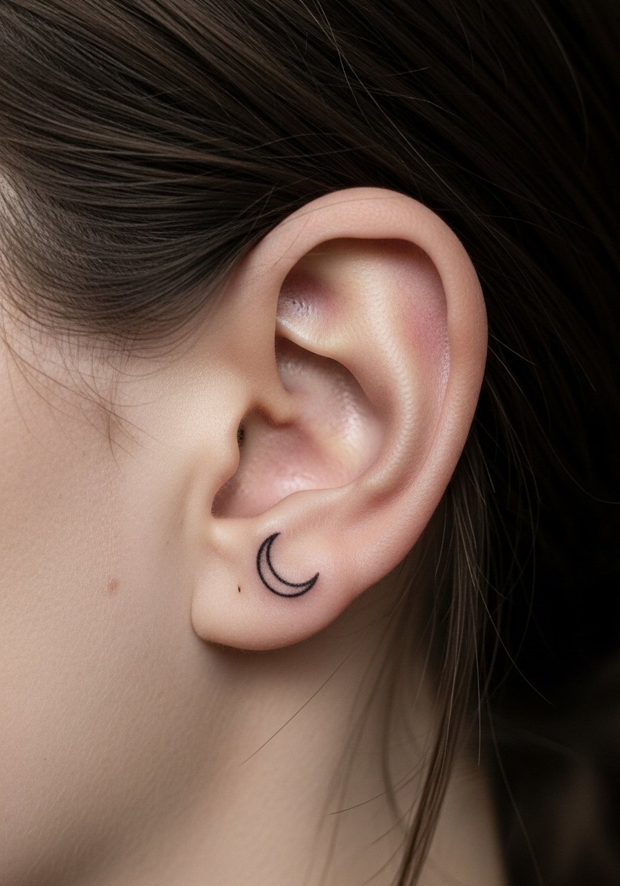 3. Minimalist Crescent Moon Behind Ear