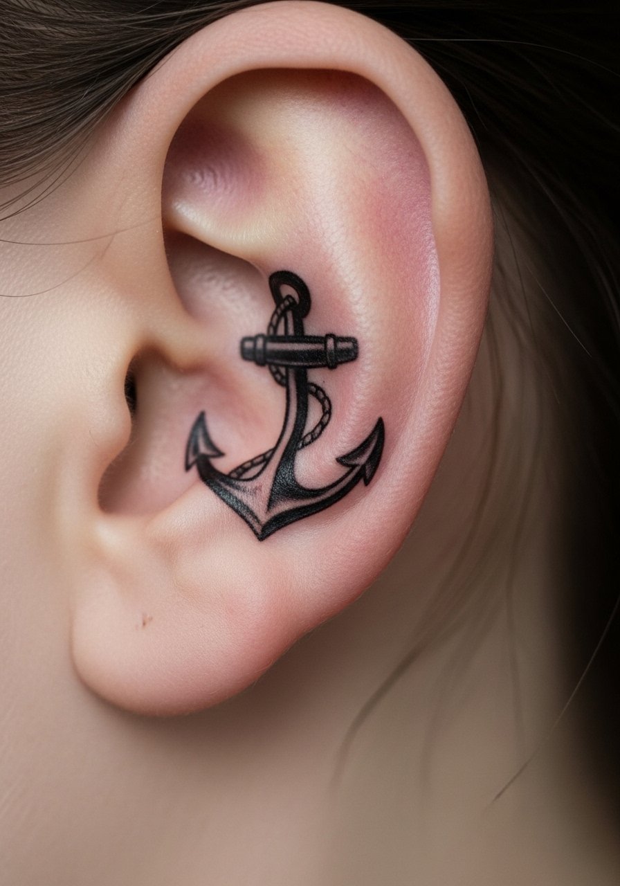 Anchors are timeless and simple to execute behind the ear. Bold lines avoid early blur. Pain is usually just a sharp pinch. Healing is quick if you keep shampoo off it for the first few days. Avoid overly intricate shading; a small, confident outline holds meaning and shape longer.