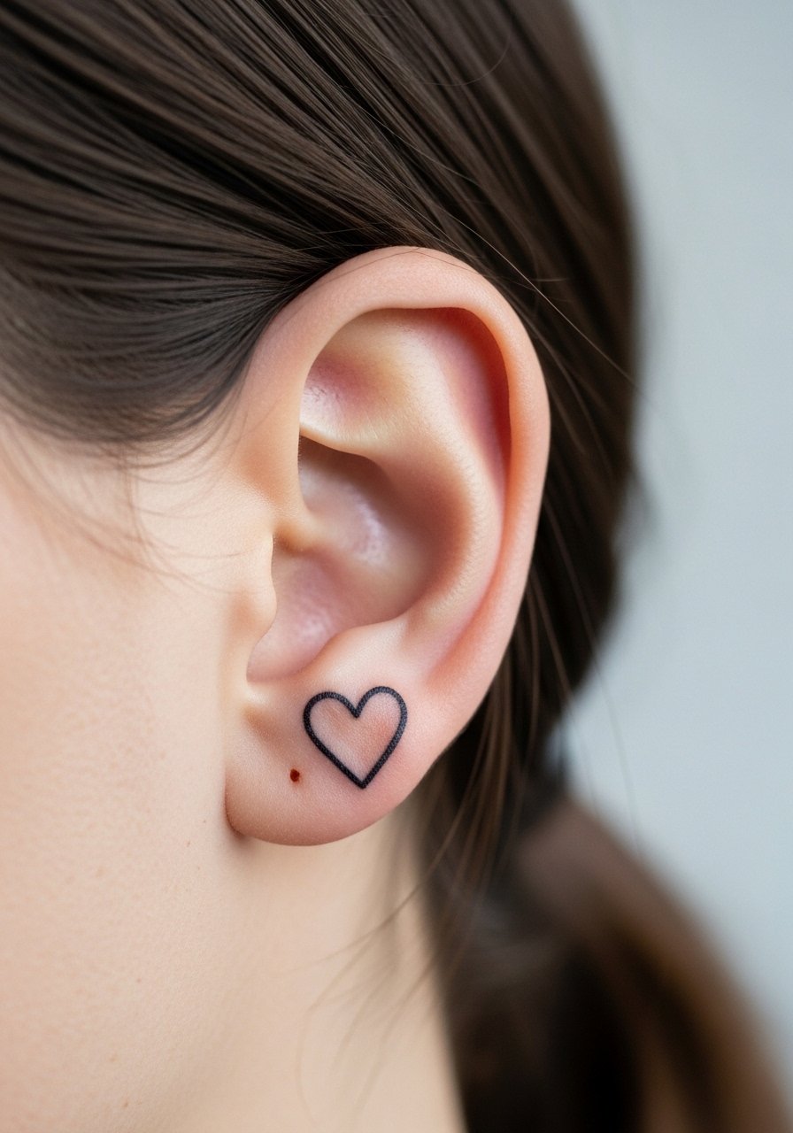 13. Tiny Heart Outline Behind Ear
