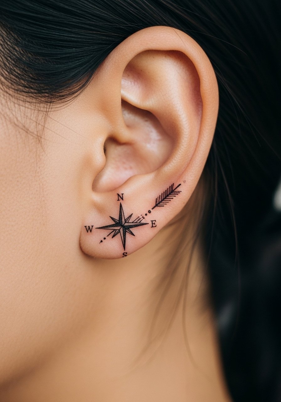 14. Tiny Compass Point Behind Ear