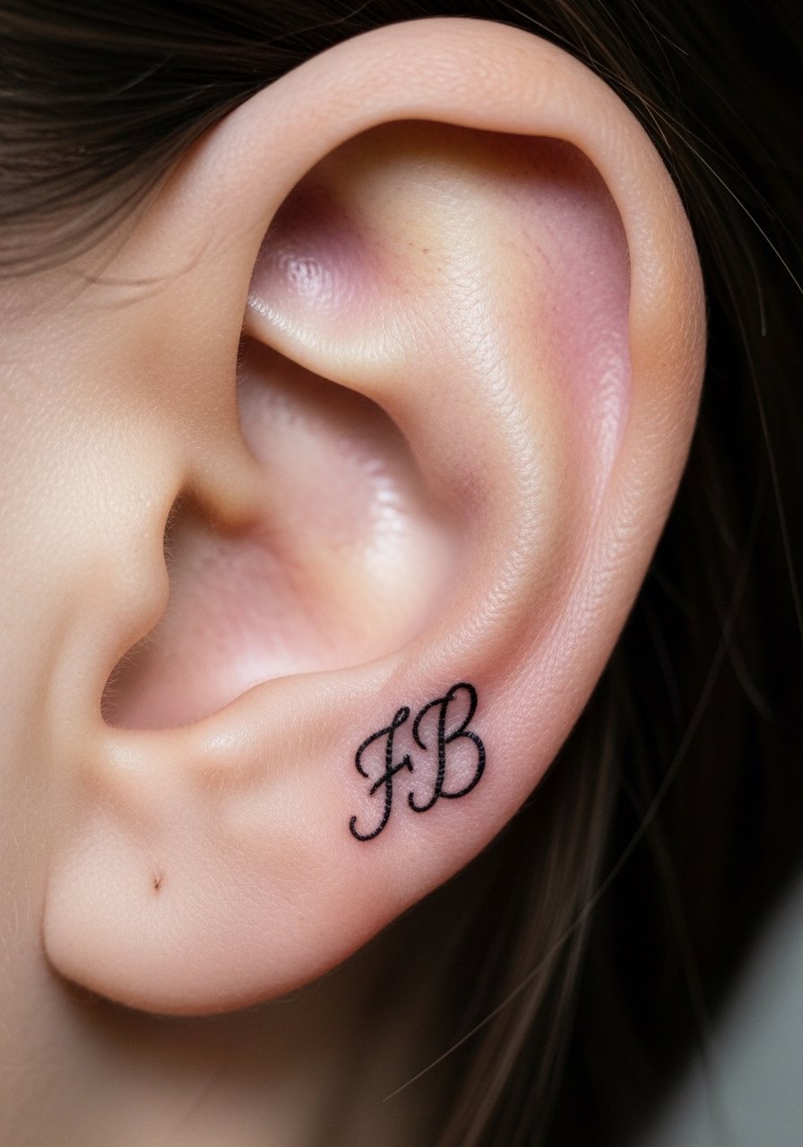 5. Tiny Script Word Along Ear Fold