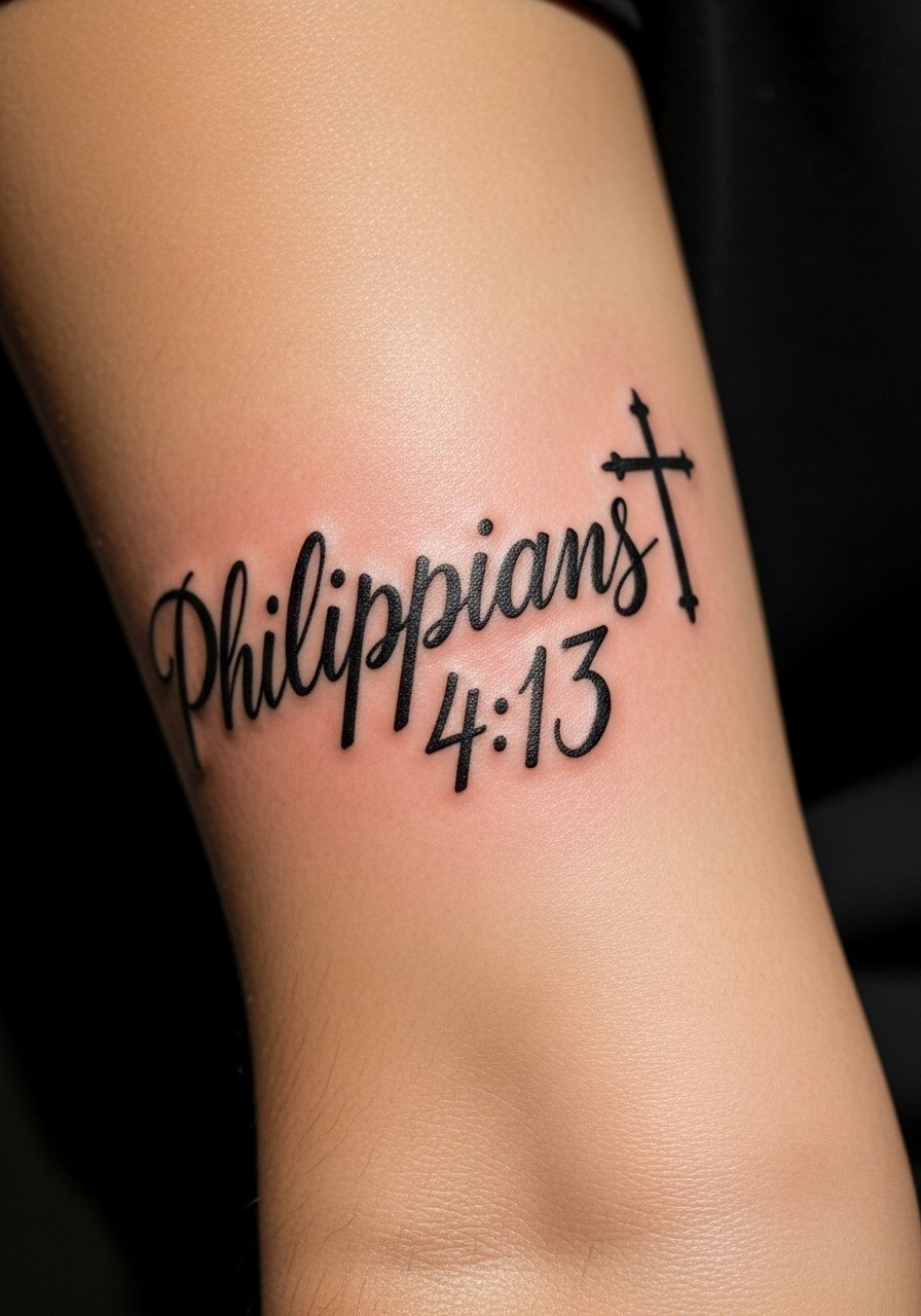 1. Bold Script Philippians 4:13 on Outer Forearm