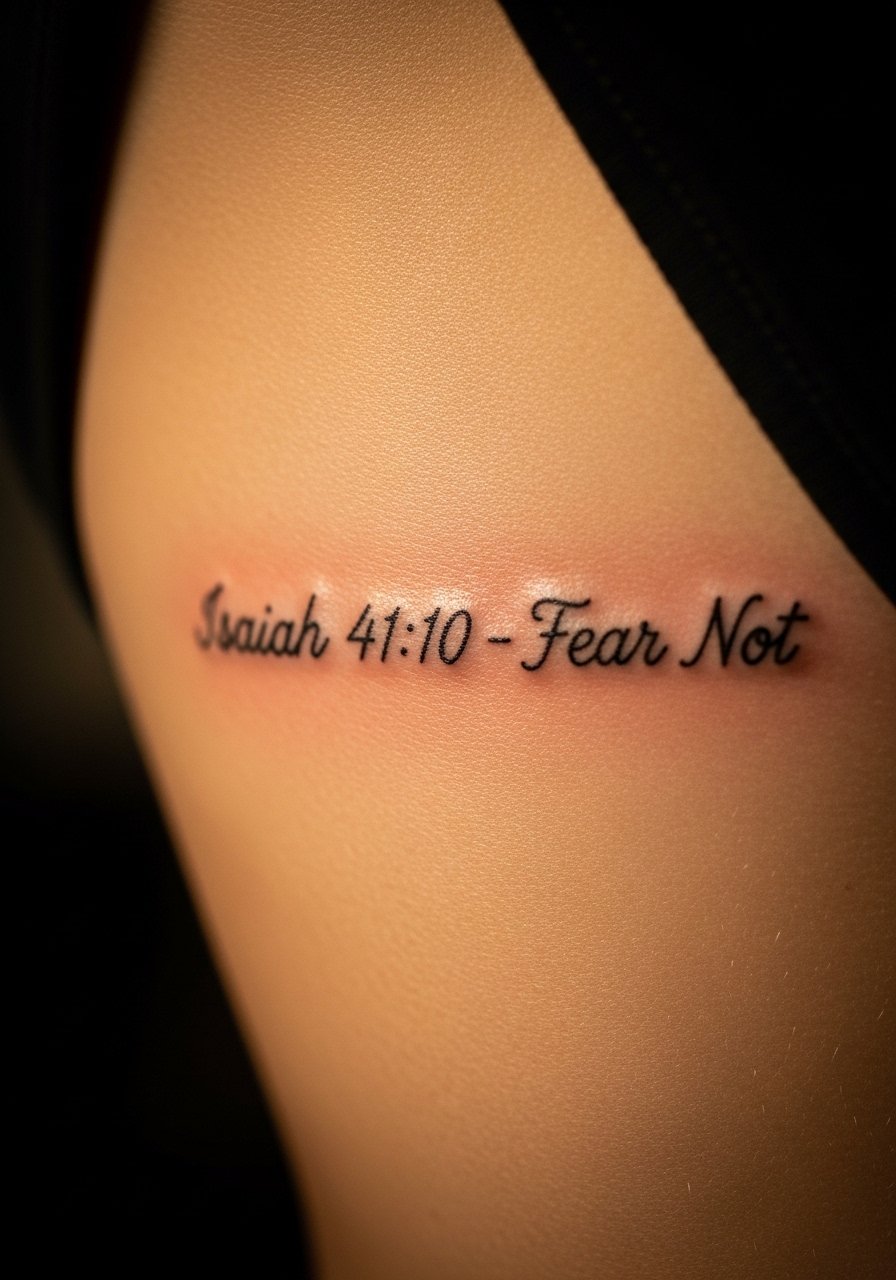 4. Isaiah 41:10 “Fear Not” Delicate Script on Ribcage