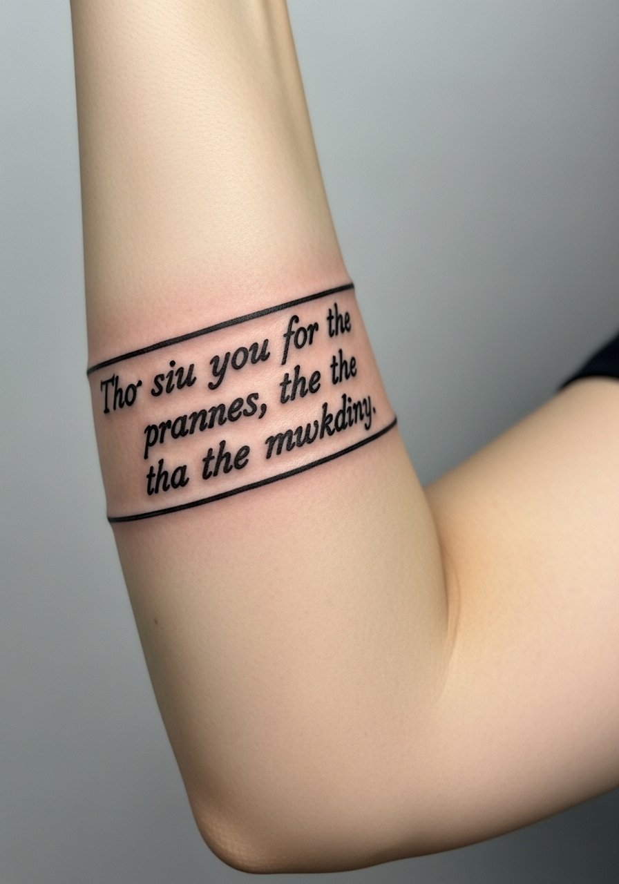 A verse as a bicep band is a modern and bold choice. The curve of the bicep flatters a short line of scripture and holds up well because the skin there is stable. I recommend slightly thicker lettering to prevent any blurring along the wrap. This is great if you want visibility that can be hidden under sleeves.