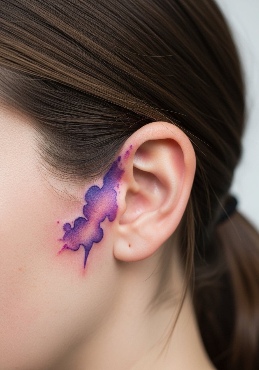 Fair warning, behind the ear is tender. The skull bone is close, so pain spikes during shading. I saw this on someone who wanted February symbolism that read soft and painterly. Watercolor style looks fragile fresh. It also tends to fade unevenly on the ear because of friction from collars and hair. Ask your artist to keep splashes small and anchor the design with thin, stable outlines. Session time is usually 45 to 90 minutes. Healed at one year the pigments are softer but still readable if you pick saturated tones. Avoid asking for huge washes that sit on thin skin. For upkeep I recommend a non-greasy SPF stick for daily sun protection when hair parts. SPF 50 sunscreen stick for tattoos