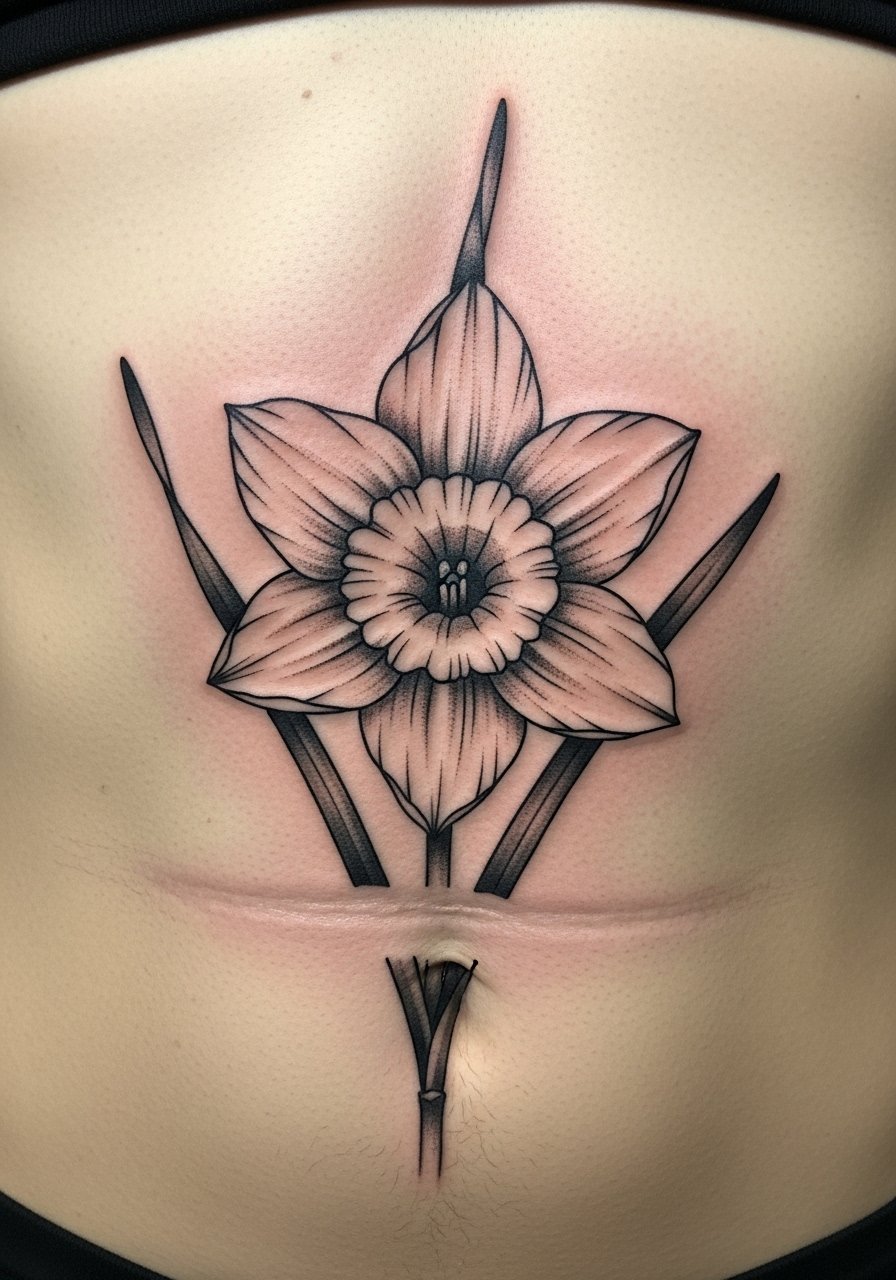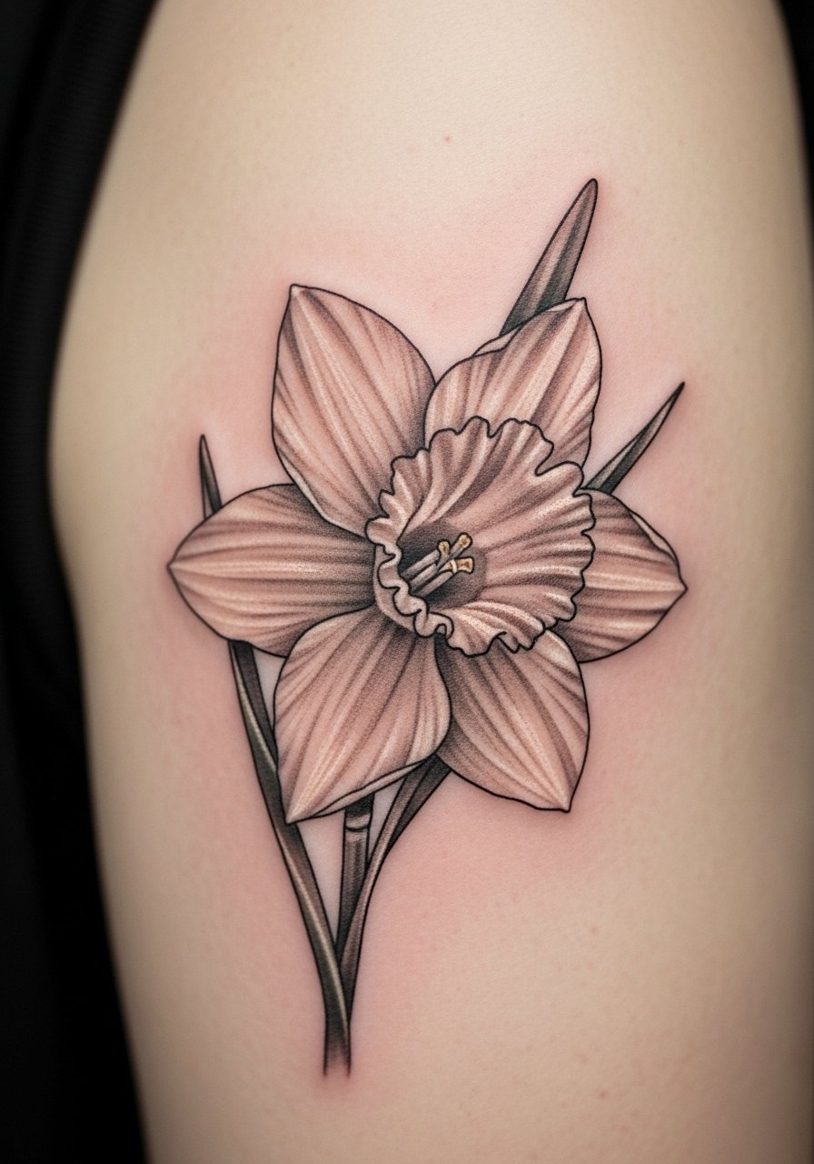 I loved this when an artist combined a birth daffodil with light skin tonal work for March. Micro-realism makes the trumpet and ruffled petals read like a small painting. The upper arm handles long sessions well. Pain is moderate. Expect a 1.5 to 2 hour session for a palm-sized piece. What works in real life is slightly exaggerated shadow. Tiny micro-dots look great for texture, but if you make everything ultra-fine it can blur into gray. During consultation ask to see healed photos from the artist of similar sizes. I also tell clients older skin needs bolder contrast to stay legible at two years. For initial healing use a fragrance-free lotion like CeraVe. CeraVe Fragrance-Free Moisturizing Lotion