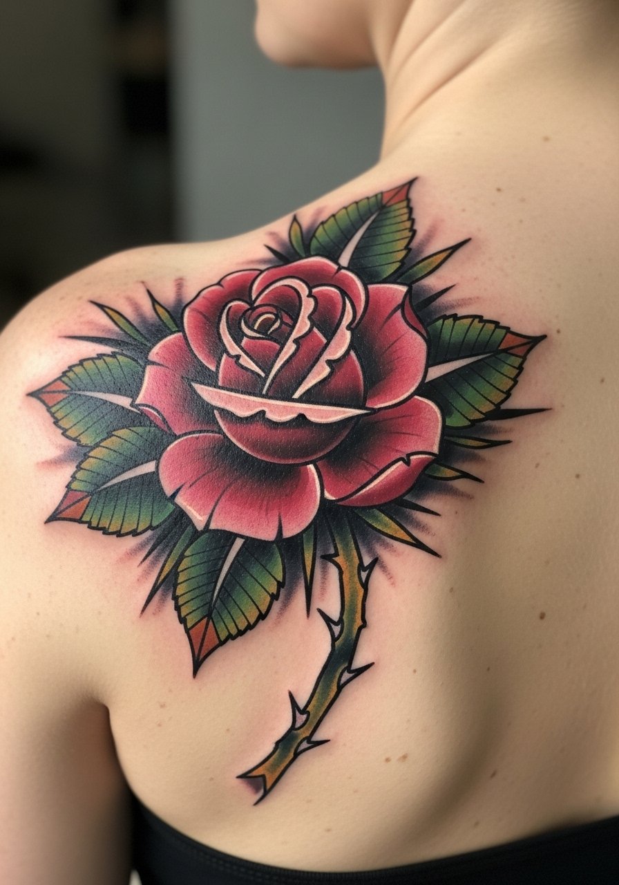 I noticed neo-traditional roses on shoulders during a gallery hop. This placement sits where clothing rarely rubs. Pain is low to moderate. A 1 to 2 hour session will get you a saturated rose with depth. The style ages well because the outlines are purposeful and the shading has room. Ask your artist for reference photos of healed neo-traditional pieces on the shoulder. Avoid asking for lots of tiny stippling near the petals. That detail can merge with healed skin texture. If you want long-term vibrancy, use a targeted tattoo balm in the months after healing.