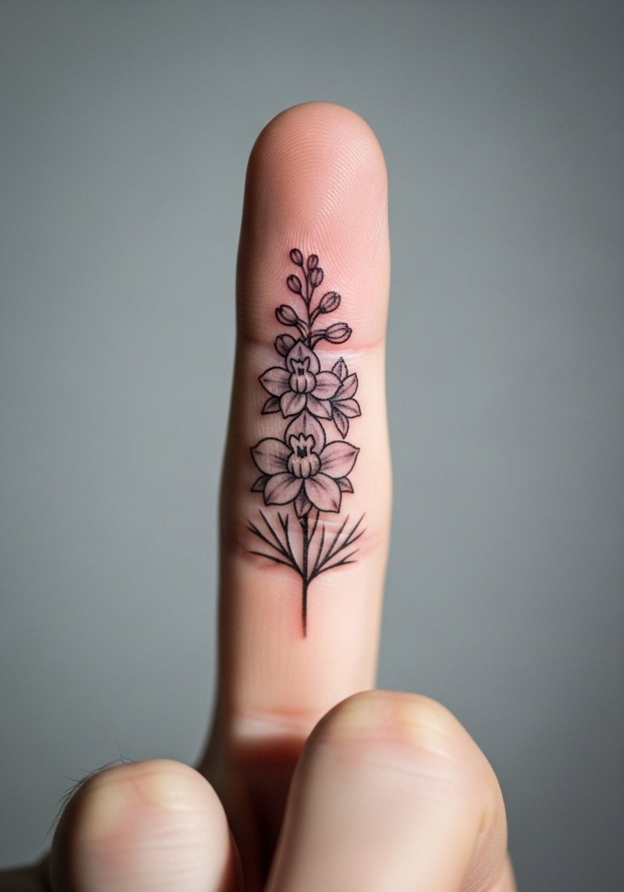 Finger tattoos are tempting, but plan for touch-ups. I have observed finger work fading faster because of constant washing and friction. A tiny stack of larkspur across the finger joints looks delicate. Pain is bright and quick. Sessions are short, 15 to 30 minutes, but you will likely need a touch-up at one year. Ask the artist for slightly thicker stem lines and avoid ultra-fine petal veins. If you want longevity, place the design on the side of the finger rather than the pad. I recommend hydrocolloid bandages for small tattoos while they seal. Hydrocolloid bandages for small tattoos
