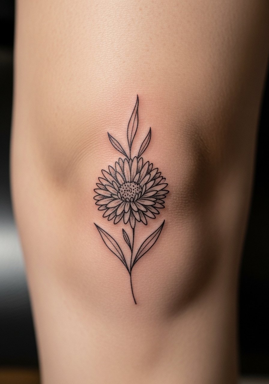 Behind the knee is a tricky area. The skin folds and stretches so linework must account for that. I saw an aster here that looked elegant but needed careful placement. Pain is variable. Sessions are often short but require careful positioning. The mistake I see is using a perfectly symmetrical design. When knees bend, symmetry breaks. Ask your artist to design for movement and to test the stencil with your leg bent. Healed at six months thin lines look softer. Consider slightly bolder stems so the piece reads when you walk.