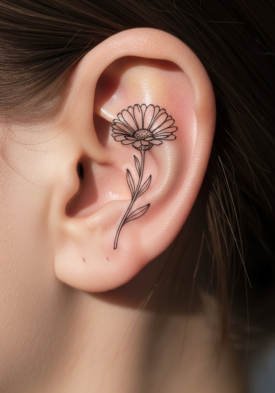 Behind the ear is a low-visibility sweet spot that carries little daily abrasion if hair covers it. I watched someone get a small calendula here for an October tie. Pain is sharp but brief. Keep the lines slightly stronger than you think so it remains legible at two years. Artists I know will show you healed behind-ear shots because the area can lose thin lines. For post-care a tiny dab of healing ointment and careful drying works well.