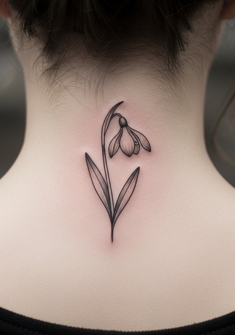 A snowdrop at the nape is a quiet January statement. The skin is thin. Single needle gives an elegant look but needs regular sun avoidance. Expect moderate pain when the needle reaches closer to bone. Session time is short. I advise asking for slightly reinforced line weight near the base so it survives hair brushing. A common mistake is placing it too low where hair pulls the scab. Place it a little higher and ask your artist how you should sleep while it heals.