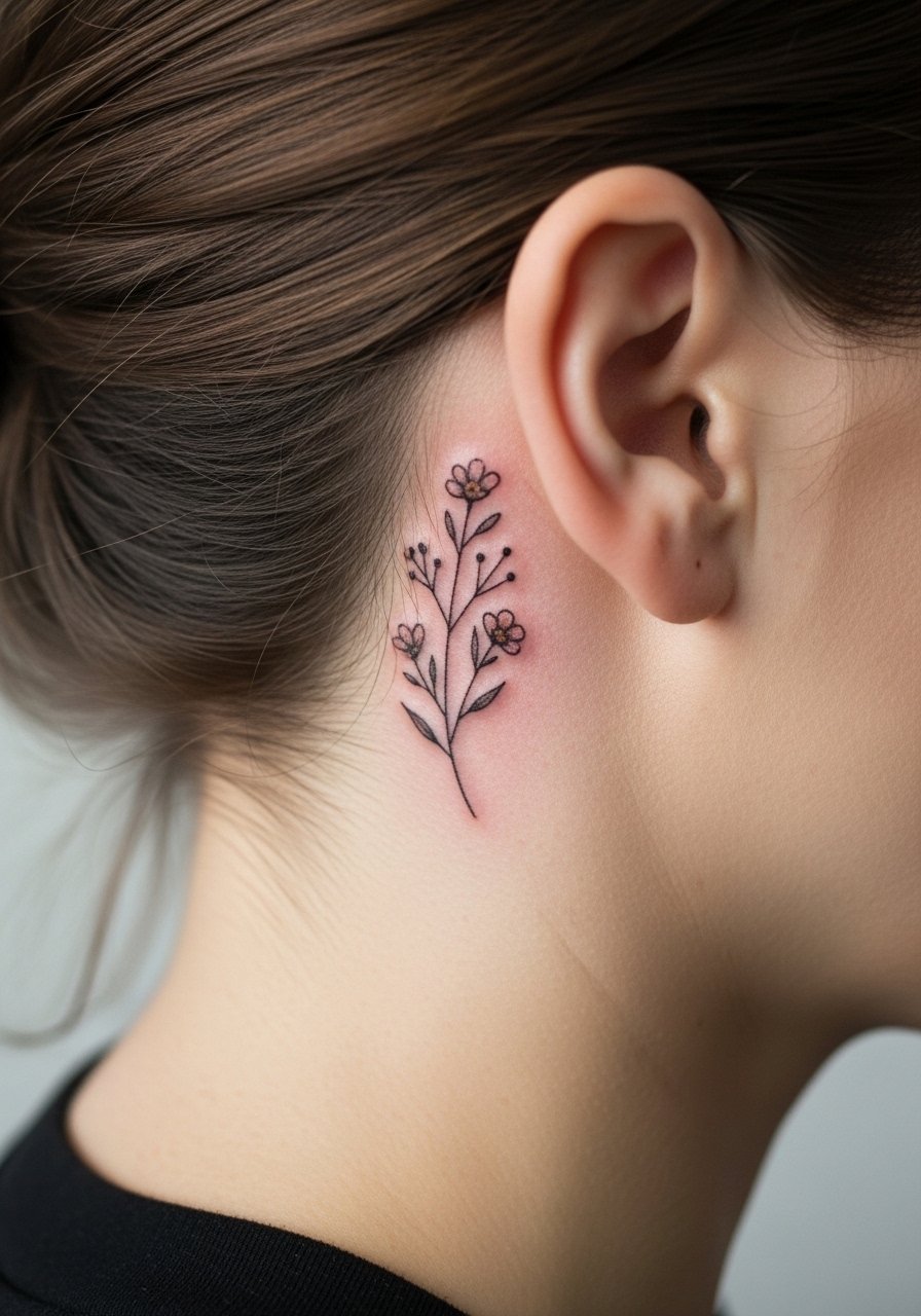 I kept seeing small clusters like this on social feeds. Behind the ear lets you wear a tiny bouquet without committing to a visible spot. Pain is quick and sharp. Short sessions are common. The risk is scabs snagging on hair. Ask for compact petals and slightly thicker connectors between blooms. That prevents individual flowers from flattening into a smudge. For drying and sleep, use a silk pillowcase if you can. It helps reduce hair friction.