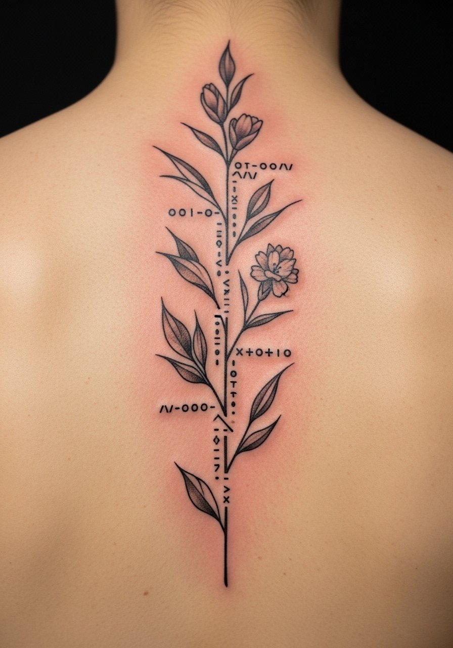 This is one of the unique angles I found. Integrating morse code into the stem of a flower adds a secret layer of meaning. Spinal placement can be tender, but the vertical line reads beautifully. Pain is moderate to high depending on how close to the bone you go. Sessions can be split. The trick is consistent spacing for dots and dashes so the code remains legible long term. A mistake is spacing dots too closely to petal lines. Ask your artist to map the code on your back in different positions before inking. Healed, it looks like a delicate spine ornament.