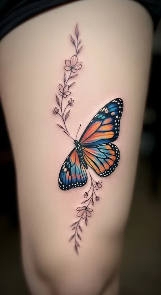 8. Butterfly and Floral Vine on the Thigh
