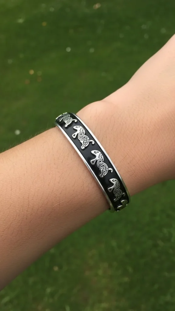 Animal knot bands bring small creatures—like birds or hounds—into the loops. This adds personality while keeping the design grounded in Celtic style. You can choose one animal and repeat it or alternate two shapes. To keep things simple, choose a small silhouette-style knot instead of detailed shading. A DIY test strip with tiny printed animals helps you see how each figure sits when wrapped. If you want something subtle, shrink the animals and keep them inside the knot loops. For more presence, enlarge them slightly. This design works well for arms, ankles, or calves.
