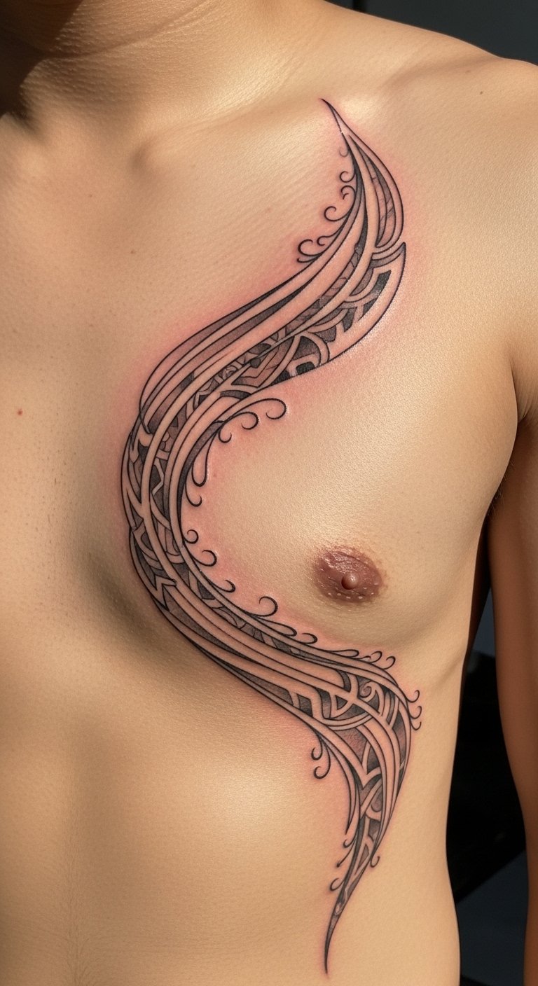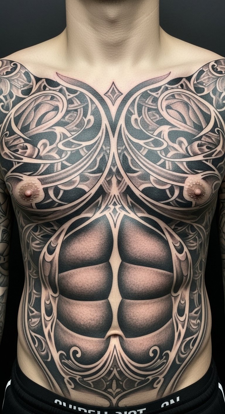 Blending ribs into chest art creates seamless flow, but ribs hurt. I recommend spacing sessions and using Saniderm for large heals. The payoff is continuity—designs look intentional and bold when healed. Plan placement carefully with movement mockups.
