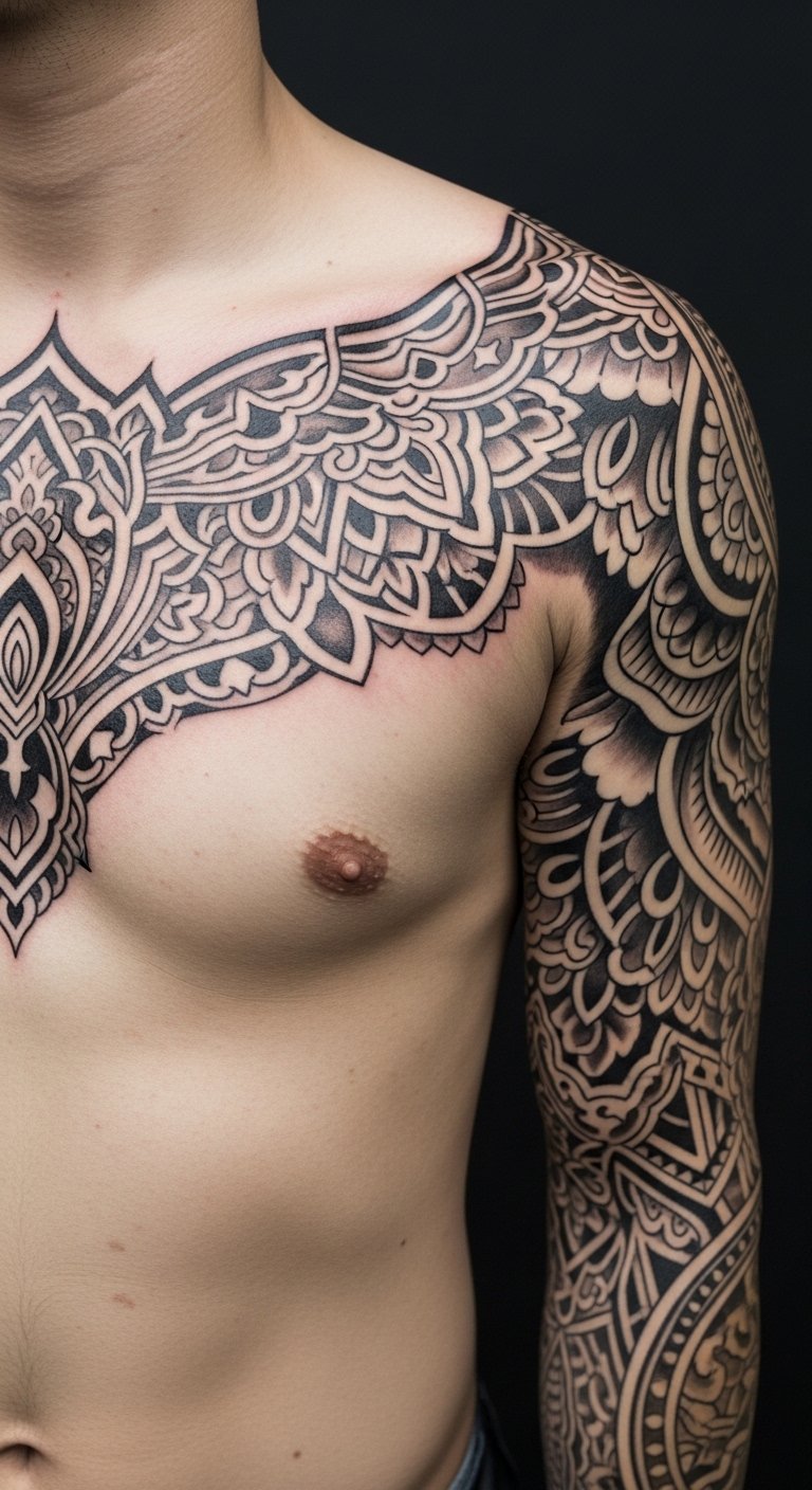 Pec Tattoo Integration — Shoulder/Half-Sleeve Extension