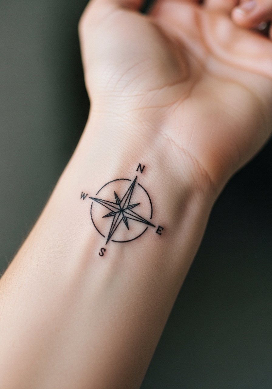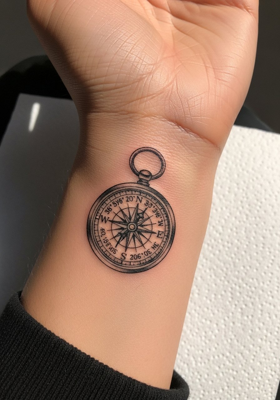 Best For: Discreet daily-wear, small compass tattoo ideas