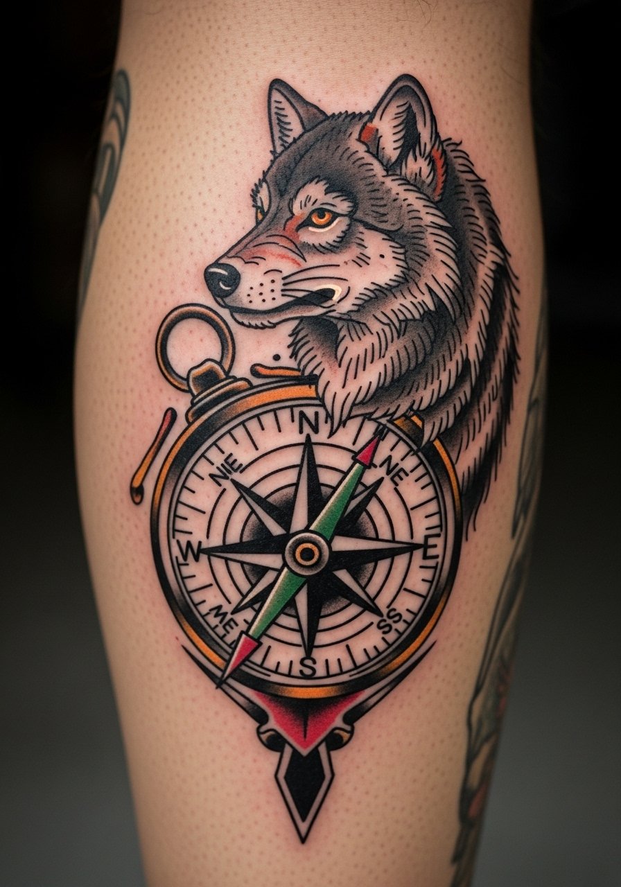 Pairing an animal—wolf, bird—adds personality. I picked a bird once to represent freedom; others choose wolves for guidance. Calf placement gives shape room and lower pain. Ask your artist how the animal’s lines will interact with the compass points so neither element muddies as it heals. These personalized compass tattoo ideas read like a story.