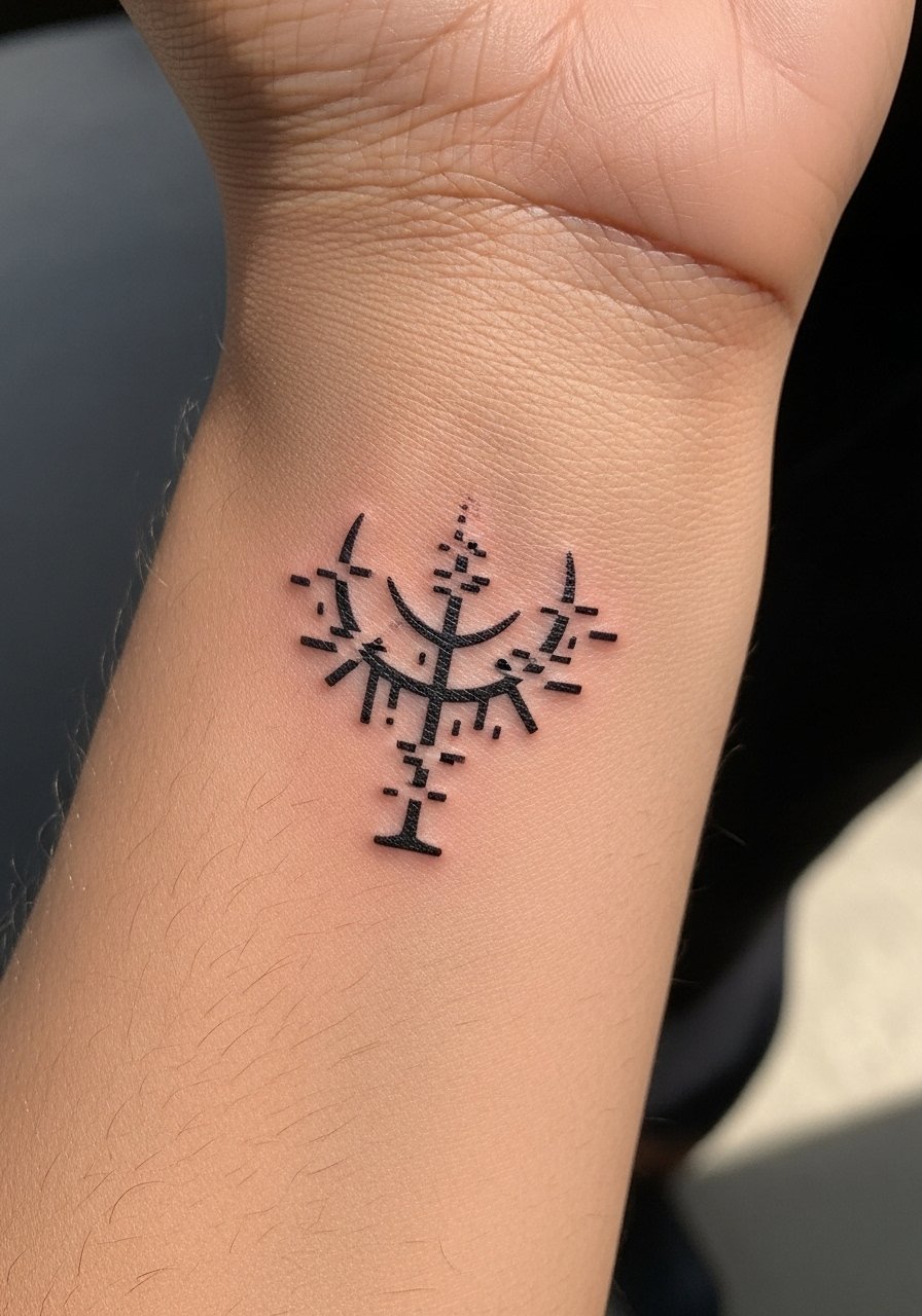 4. Cyber Sigilism Glitch Wrist Tattoo