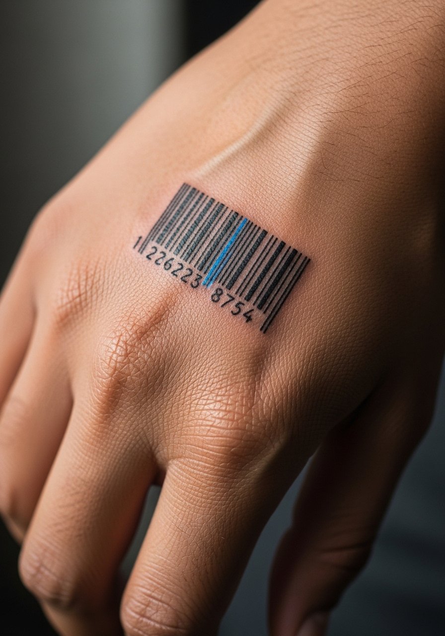 A: Hand barcodes are bold but they live in a high-wear zone. If you want subtlety, choose thicker bars with a single colored accent rather than micro lines. Be prepared for a likely touch-up within the first year.