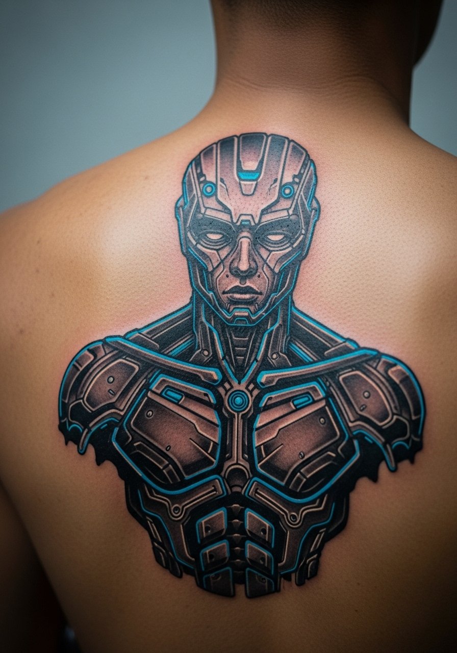 There is a reason large back panels get built over multiple sessions. They let the artist layer black anchors first and add neon on later visits to protect saturation. When you describe this to your artist, say you want a strong black base with neon-blue accents so the color pops on darker tones. Large back placements tolerate bold approaches and the pain is spread out across visits. UV exposure is the enemy of neon, so plan long-term sun protection if you want that blue to stay vivid.