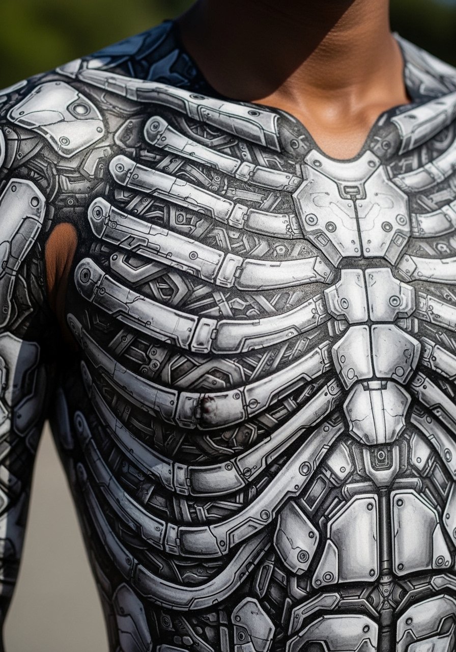 Pairing alien motifs with cyberpunk elements gives a fresh narrative. Shoulders are forgiving for growth and movement so the design keeps proportion better than the inner arm. During consultation, describe the alien motifs you like and ask the artist to integrate them with mechanical plates so the piece reads as hybrid anatomy rather than a collage. The main mistake is mixing too many styles without a unifying anchor. Expect a moderate healing timeline and a possible touch-up after the initial six months.