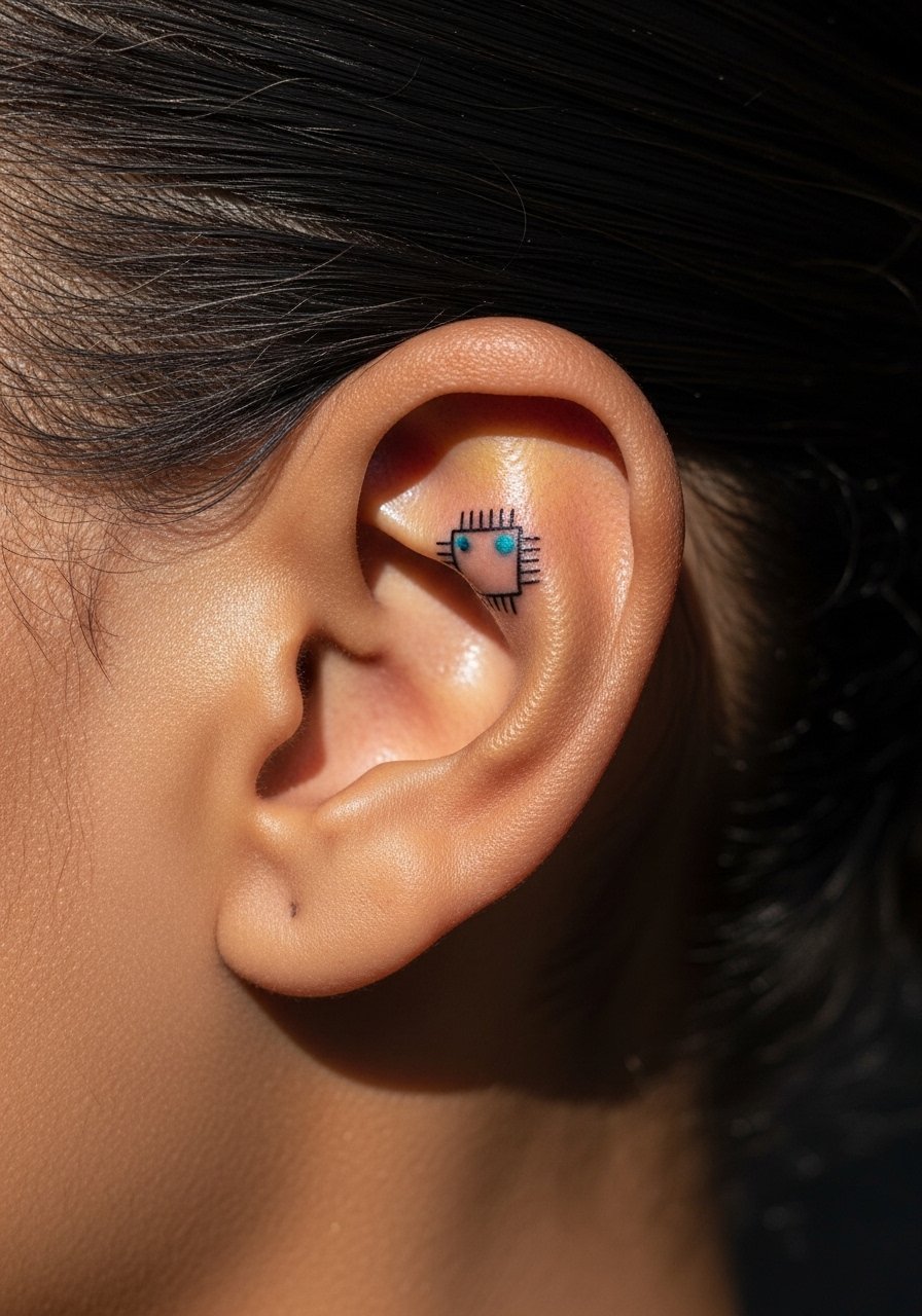 Small locations behind the ear are discreet and can be a first cyberpunk piece. The area is sensitive and not every artist will take walk-ins for such a spot, so plan accordingly. Ask for slightly bolder contour lines to help micro detail survive skin movement. The common mistake is requesting ultra-fine circuitry that disappears as the skin heals. Healing is quick and touch-ups are common at year one.