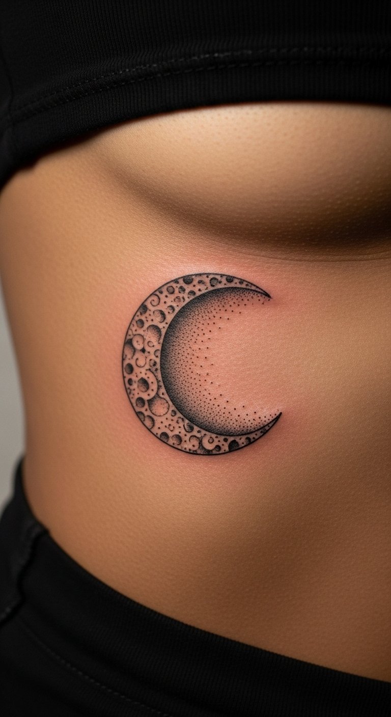 Dotwork Crescent Moon Ribcage