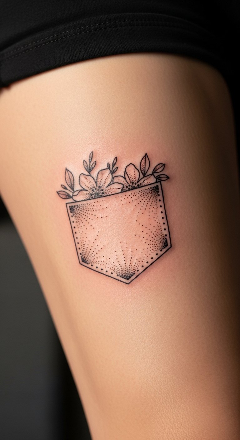 The upper thigh is forgiving and great for dotwork florals—soft curves and flesh allow for subtle stippling that reads like watercolor without color. Pain is low and healing is private, which I like for first-timers or intimate pieces. Dotwork here ages nicely since sun exposure is limited, keeping contrast intact. Watch out for friction from pants during healing; loose clothing helps. A common mistake is placing very small petals too close together—scale matters. Ask your artist for healed thigh florals to understand how dots soften and how the design looks when you sit or walk.