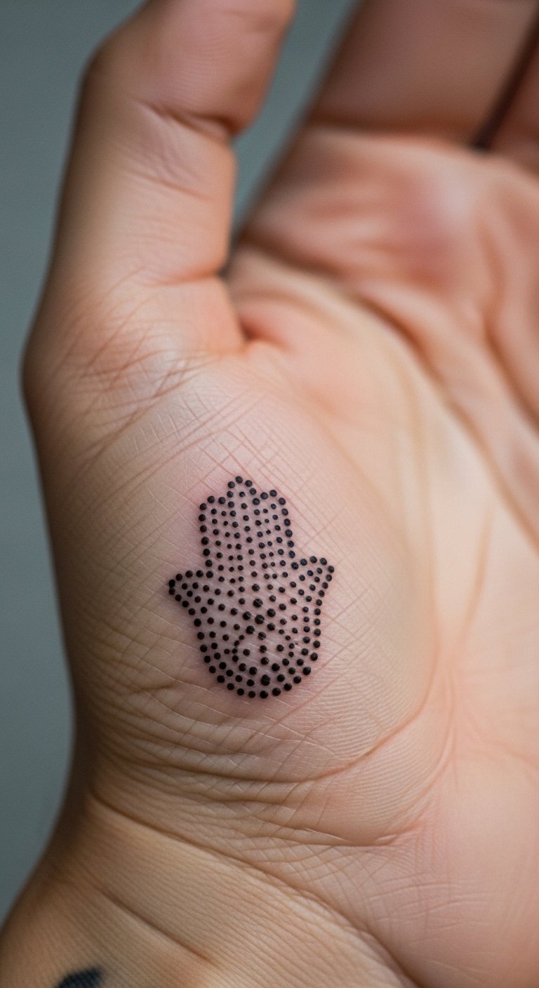 Tattooing near the palm is painful and often fades quickly because of constant use. A tiny Hamsa along the palm edge or heel of the hand can hold for a while but expect touch-ups. I only recommend this placement if you accept that it may need refreshes. The artist should advise on ink depth and dot size—bolder anchors help. Mistake: insisting on ultra-fine stippling here; that approach ages poorly. Consider slightly larger dots and accept maintenance.