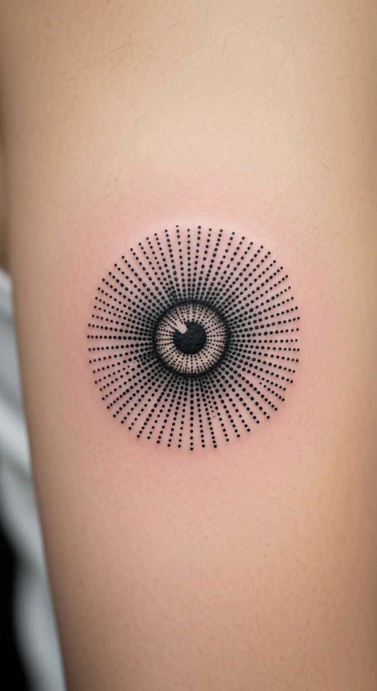 Dotwork Iris on Upper Arm (Eye Motif)