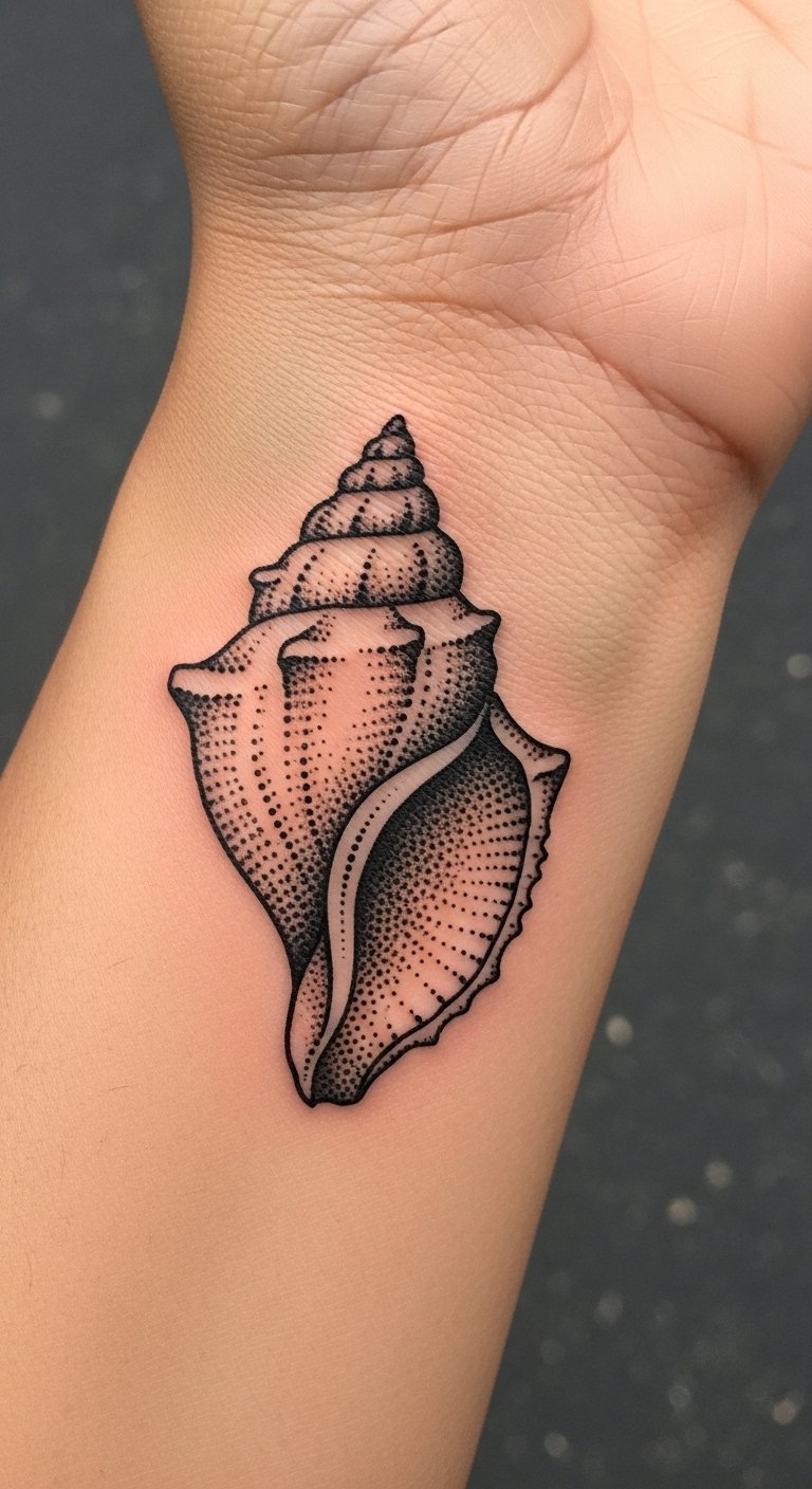 Dotwork Seashell on Wrist