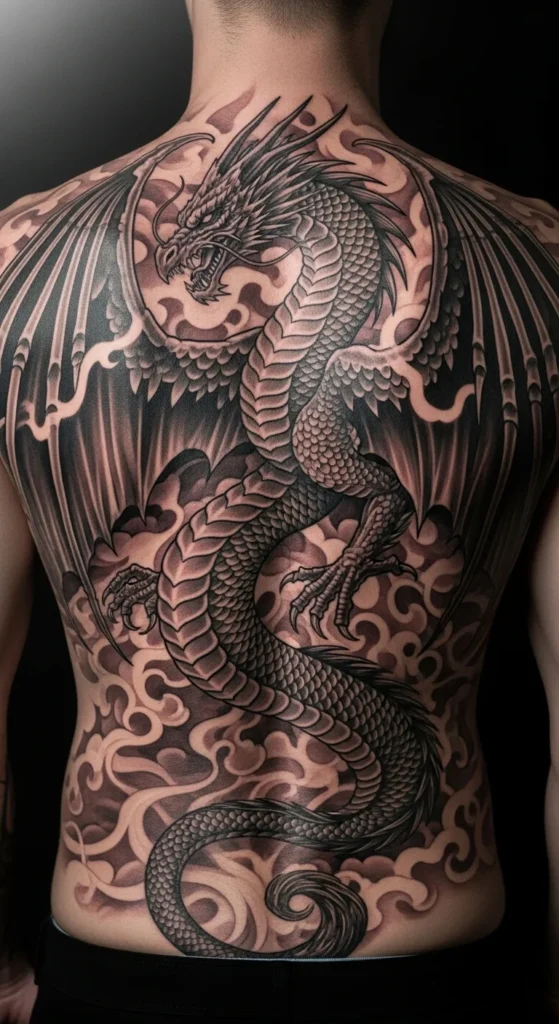 A full-back dragon gives you space for long lines, smooth curves, and large areas of shading. It’s a strong pick if you want something that stands out but still hides under clothing. Keep the design flowing across the shoulder blades so the body moves naturally when you stretch. If you’re on a tight budget, split the work into sessions. Start with the outline first, then return later for shading. A simple trick: bring printouts of dragons you like so your artist understands your style. Add soft clouds or waves to fill empty space without extra cost. If you prefer something lighter, stick with a single serpent shape instead of wings or flames. Use photos from nature—like snakes or lizards—as references for realistic textures. Talk through pain spots early, such as near the spine. A gel pack the night before helps calm the area. Many people choose black and grey for affordability since color raises the time needed. The finished look feels bold and symbolic without going overboard.