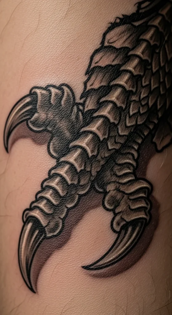 A dragon claw adds attitude without needing a full creature. It works well on shoulders, calves, or ribs. Focus on strong lines and curved talons. If you want to save money, keep the claw simple and avoid complex background elements. A quick DIY idea: photograph your own hand in a claw pose and use it as a reference. Then stylize it into a dragon form. This tattoo style blends easily with future pieces like scales or flames.