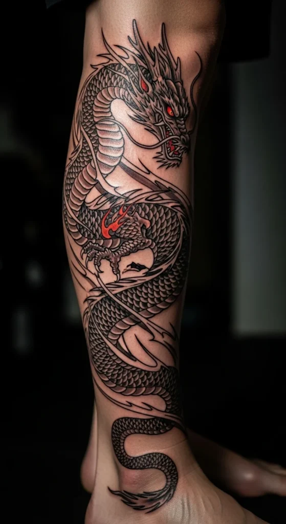 A climbing dragon works great on calves and shins. The upward motion gives the design energy. Keep the head facing upward if you want a confident message. For an affordable session, skip color and use simple shading. You can draw a climbing motion line on your leg with marker to test the path. Ask your artist to follow your natural muscle lines for a smoother finish.