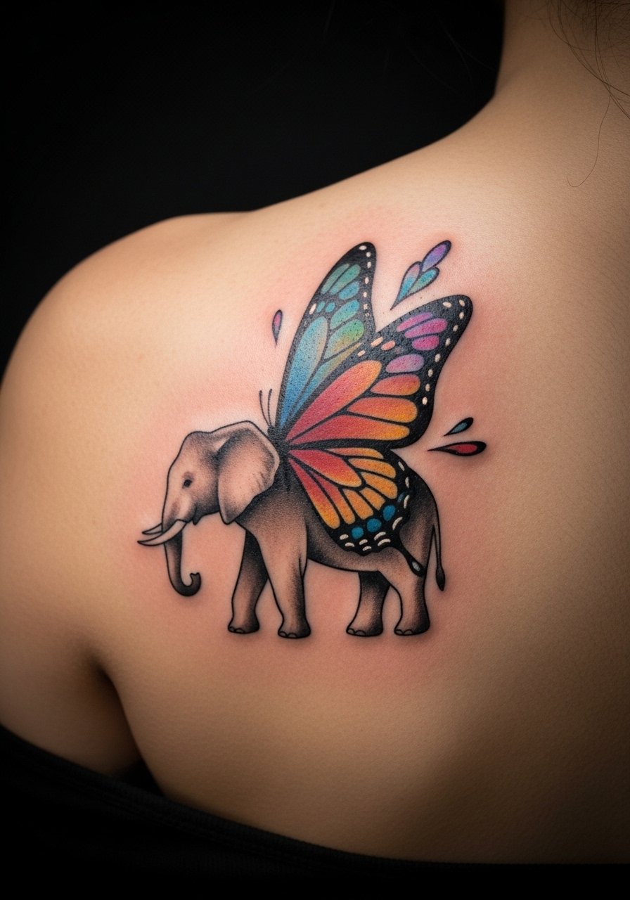 This motif combines transformation (butterfly) with the elephant’s grounding energy—it’s about growth without losing your roots. Shoulder blade placement is forgiving for pain and great for medium-sized color work. I’ve seen artists use bright, layered color in the wings while keeping the elephant in muted tones for contrast. Healing goes smoothly if you avoid backpack straps rubbing the area for the first week. A common mistake is overcomplicating the wings; clear shape and color blocks age better. When I booked mine, I asked for healed examples of color saturation on similar skin tones via Instagram. This is also a great piece if you want to expand into an elephant sleeve idea later.