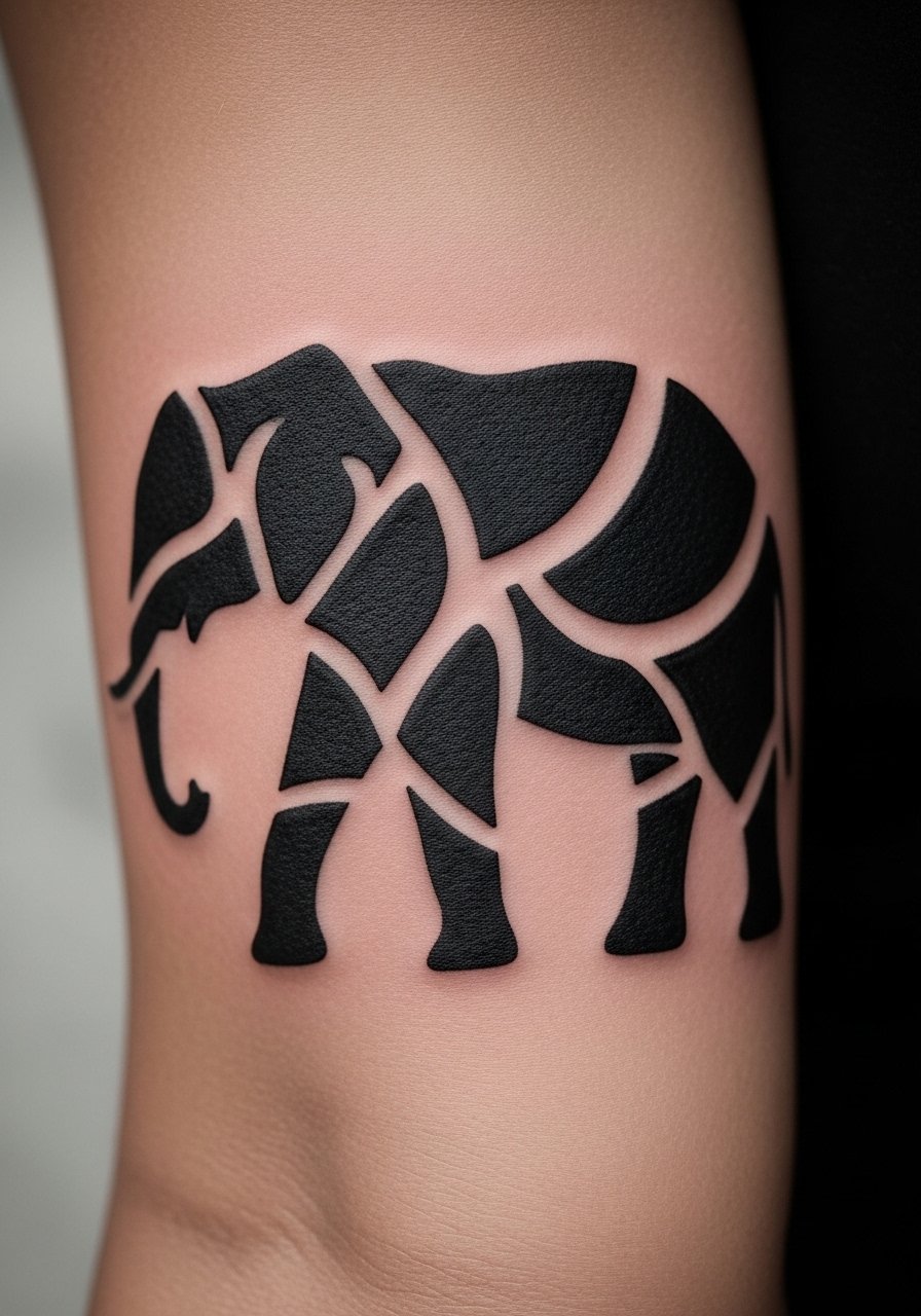 7. Abstract Blackwork Elephant Silhouette on Forearm