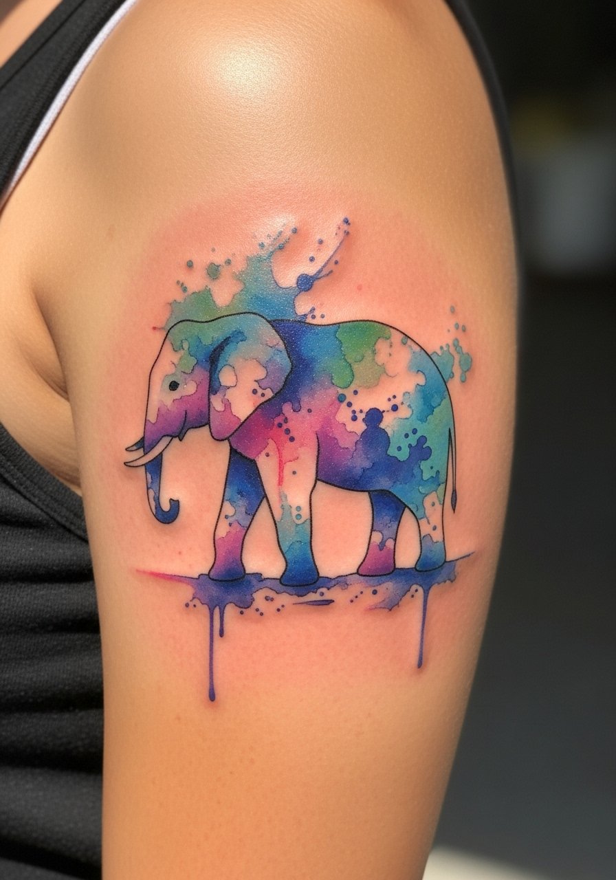 Best For: Color lovers, upper arm placement, watercolor elephant