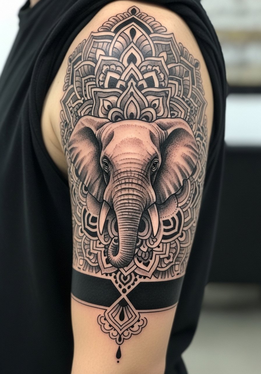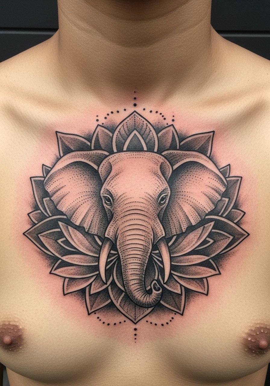 Best For: Sacred symbolism, chest centerpieces, mandala elephant tattoo