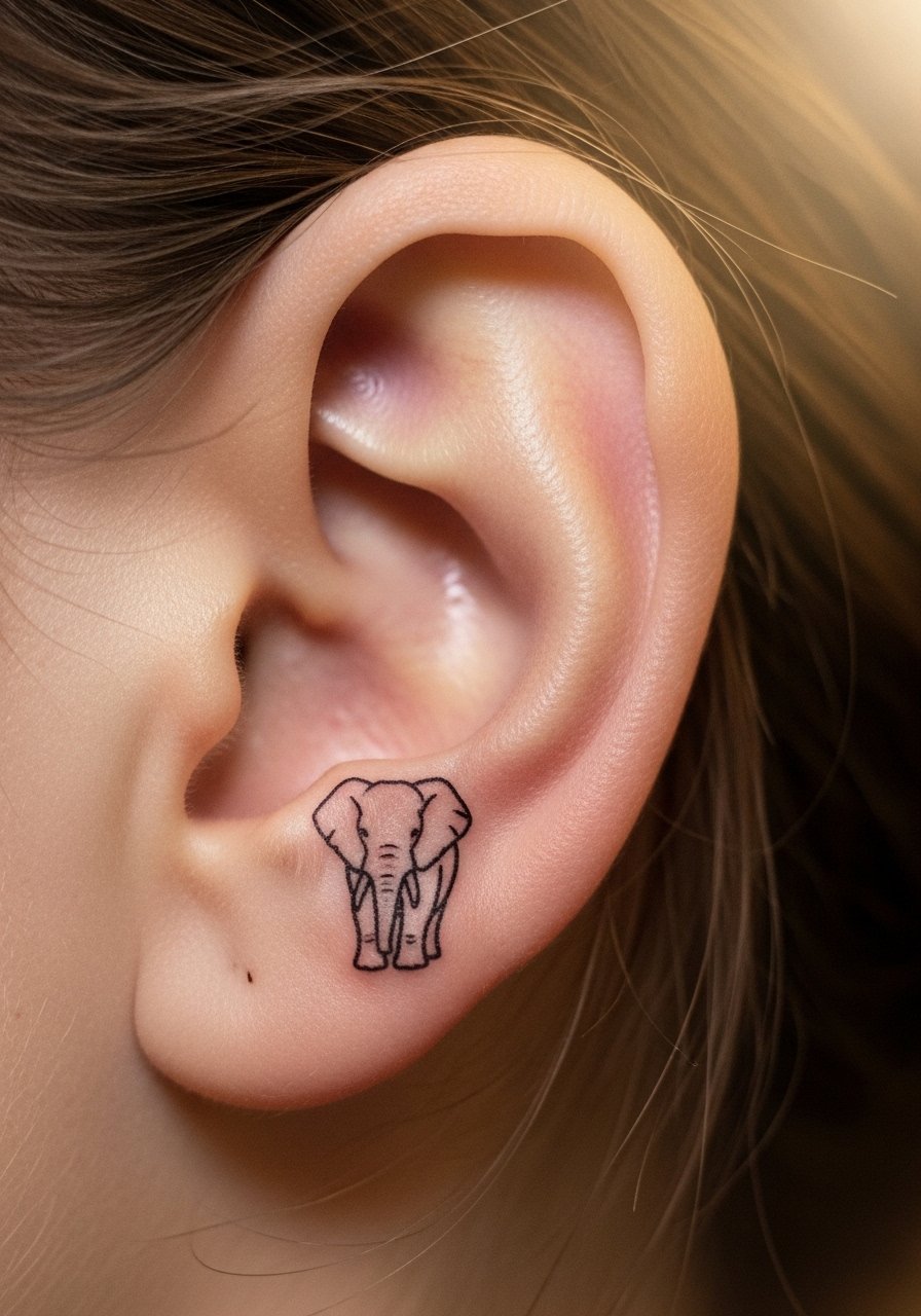 Behind-the-ear tattoos are intimate and easy to hide with hair. They hurt more than expected because of thin skin and proximity to bone. For tiny elephant tattoos here, keep lines bold enough to prevent blurring. Healing requires avoiding hair products and friction. I've seen clients pick ultra-tiny details that vanish—so ask for slightly thicker line weight. This placement addresses first tattoo anxiety because it’s small, but don’t choose it just to “test pain.” If you truly want a little talisman of protection or luck, this is a charming option; just check healed photos on artists’ feeds first.